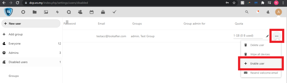 Home > DCP Admin > How to disable and enable a user