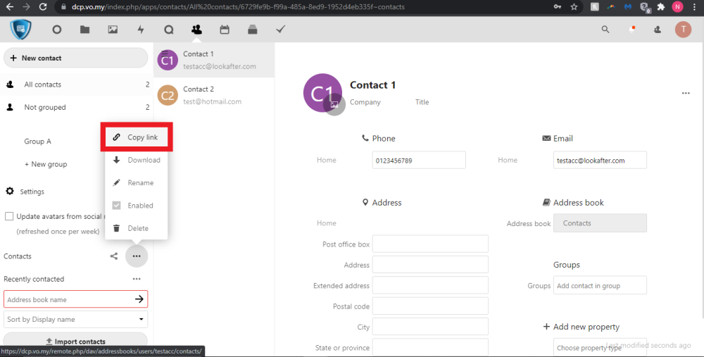 First, make sure you have CalDav synchronizer plug-in installed on your Outlook. You simply need to click “Copy link” of the selected contact list and go to your CalDav synchronizer to create sync profile, paste the copied link at DAV URL and follow the steps, accordingly. After you have done, your contact is now synched to your Outlook.