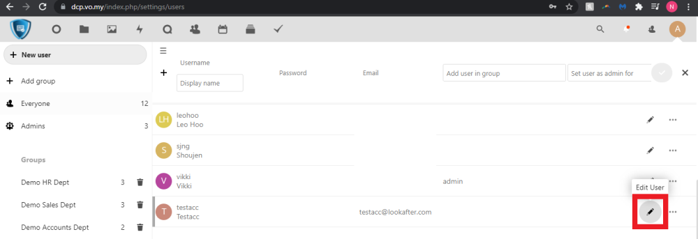 4. Then, search for the intended user and click on the pencil icon,
