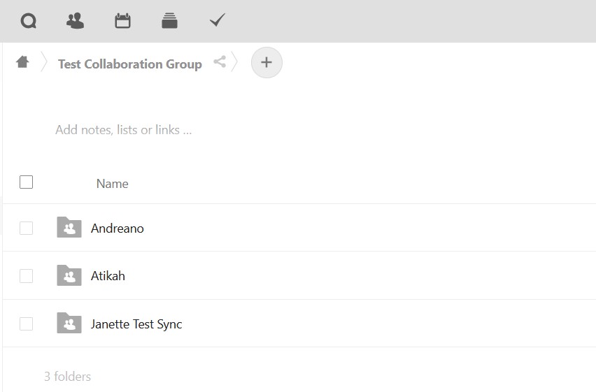 13. Log in to your DCP web browser and you will see, sub-folder “Andreano” has been added to Group Folder “Test Collaboration Group”.