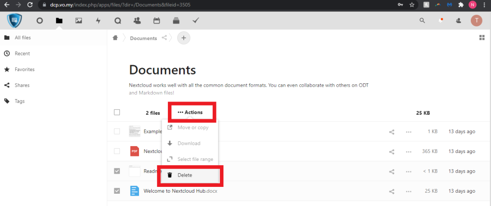 5. If you want to delete multiple files/folders, tick the checkbox of the files/folders and click on [•••Actions].