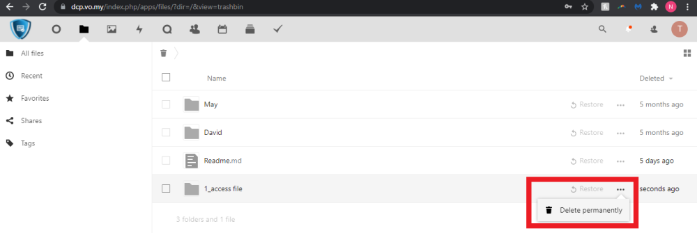 6. To permanently delete the files/folders, you need to go to the [Deleted files] as shown below.