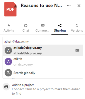 3. In the search box, you may either write down the recipient username (DCP user), email address (DCP and non DCP users) or federated cloud ID (DCP user).