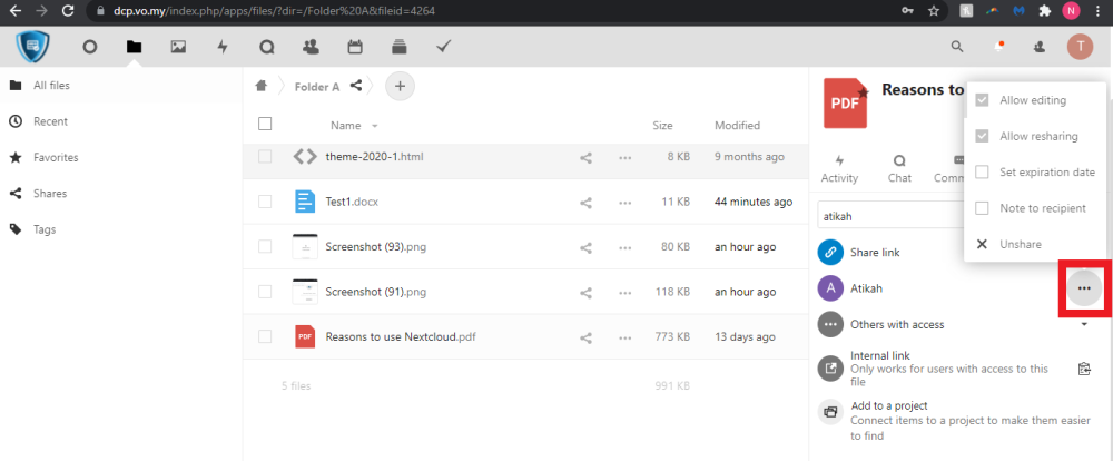 4. Accessibility for the files or folder contents are adjustable by clicking on the