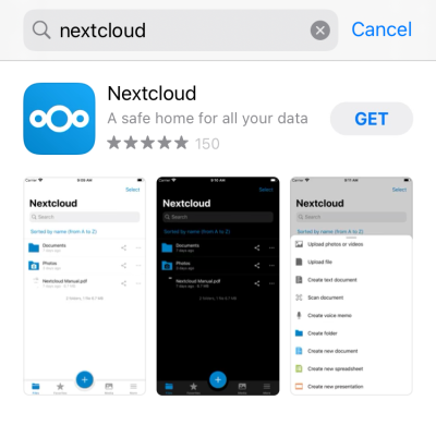 1. Go to Apple Store and search for “Nextcloud” Once you have found “Nextcloud” tap on “GET” to install the app.