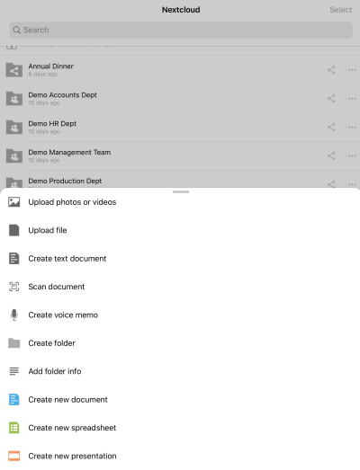 If you have iOS mobile phone or iPad and wish to have quick access to your DCP Account, we recommend Nextcloud app available at Apple Store.