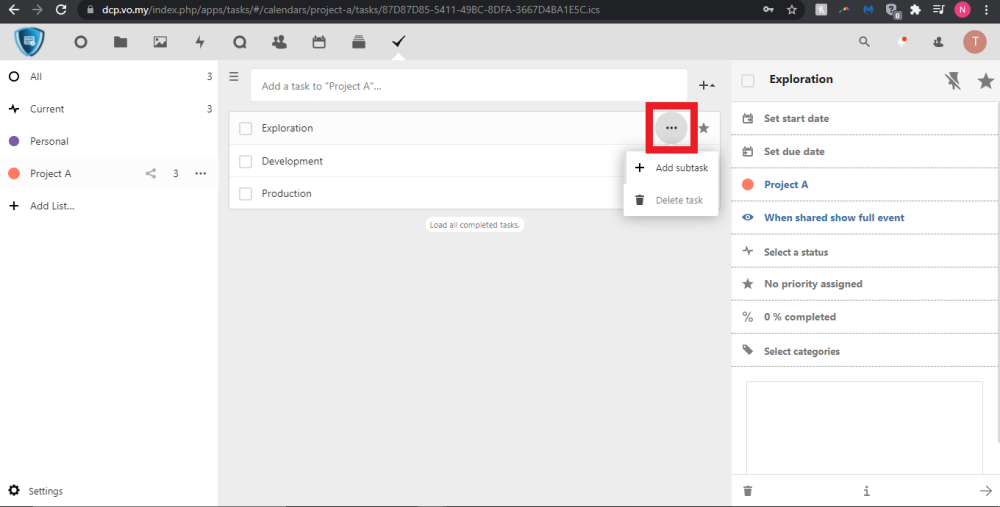 First, you may click on either a task or sub-task. Then, there will be several options on the right-side of your screen.