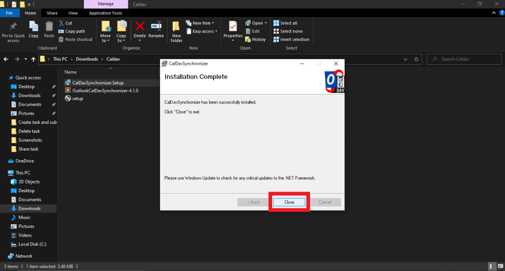 8. Click on [ Close ] once the installation complete. The plugin now will be available on your Microsoft Outlook.
