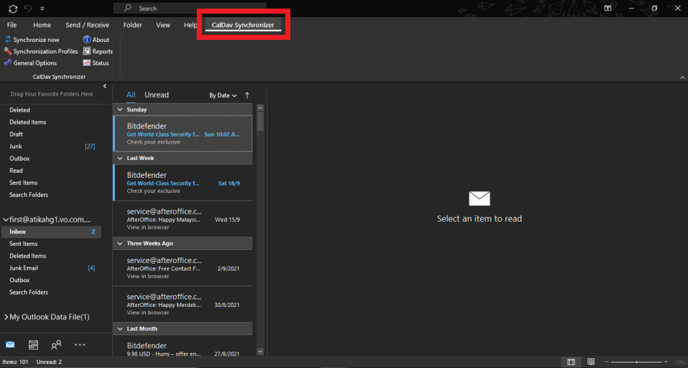 2. Then, launch the Microsoft Outlook and go to CalDav Synchronize tab.